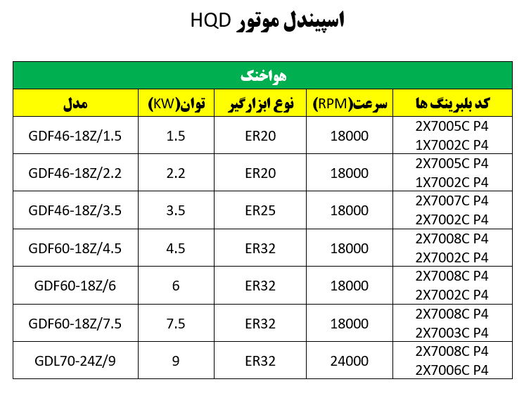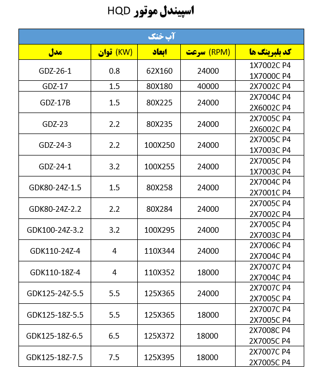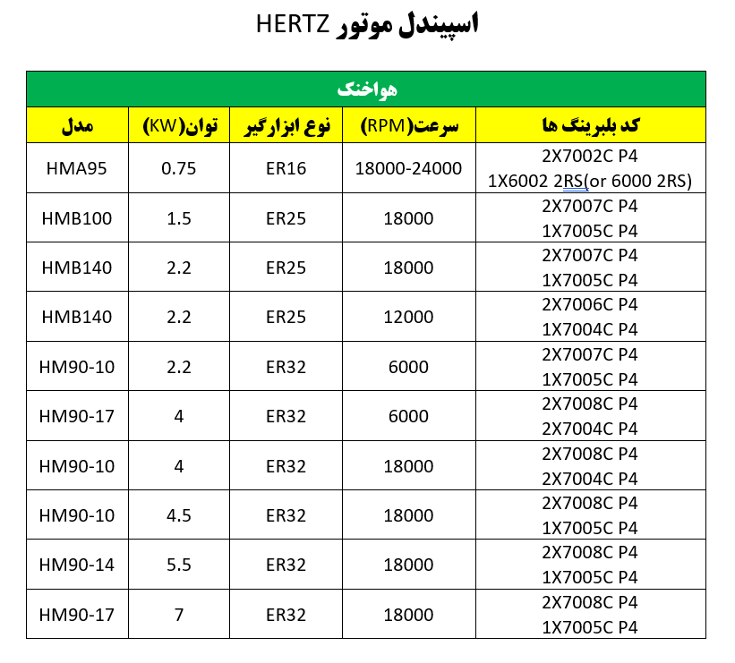 نوع و کد فنی بلبرینگ مناسب اسپیندل موتور hqd و هرتز hertz در جدول های زیر نوشته شده تا شما به راحت ترین شما بلبرینگ مناسب خود را پیدا کنید.