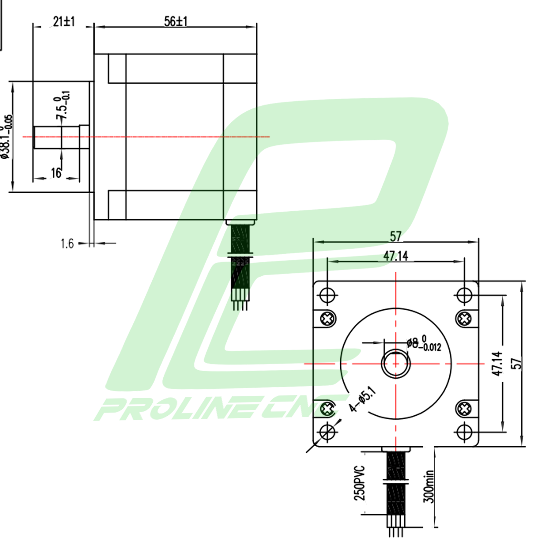 نقشه استپ موتور 57HS09 با شفت 8 میلیمتر