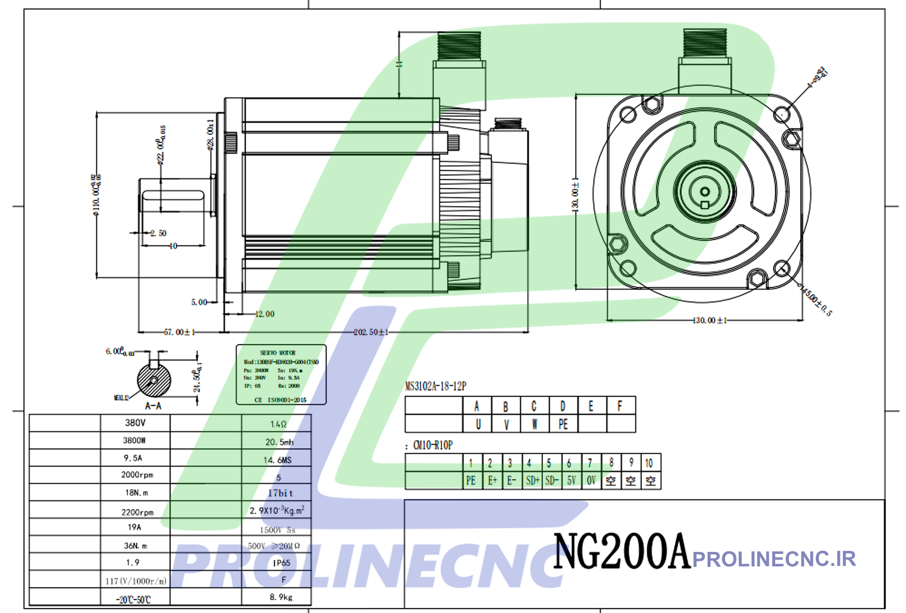 مشخصات کلی سروو موتور 3.8 کیلووات ساده مش