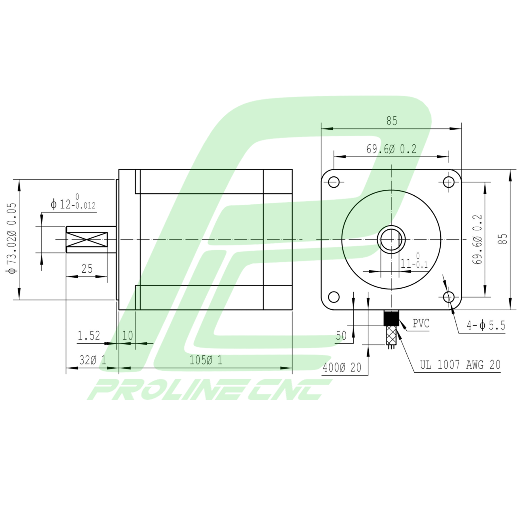 نقشه استپ موتور سهفاز 863S42 | Leadshine 3-Phase Hybrid Stepper Motor