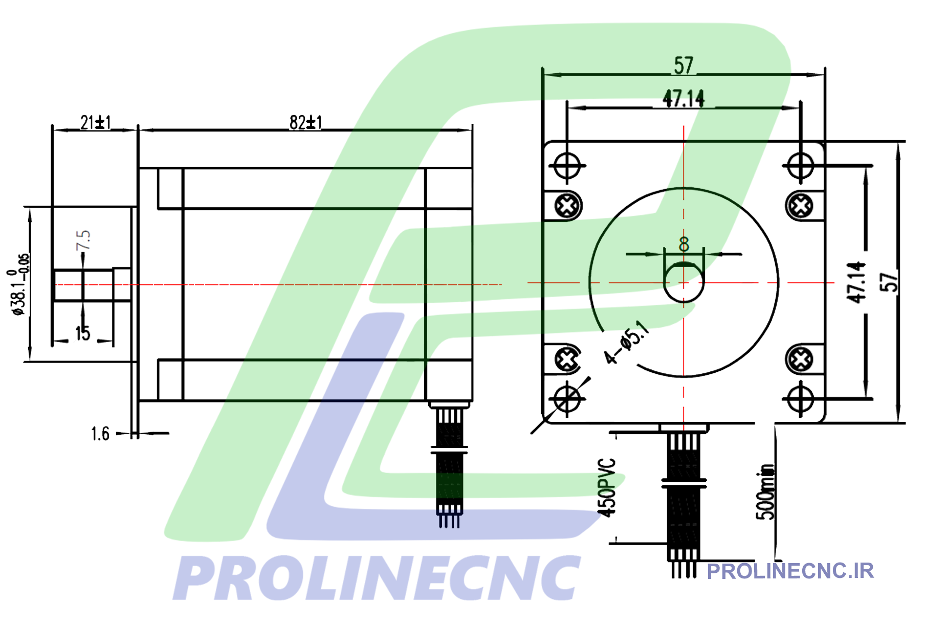 نقشه استپ موتور 22 کیلو گرم سانتی متر با شفت 8 میلیمتر