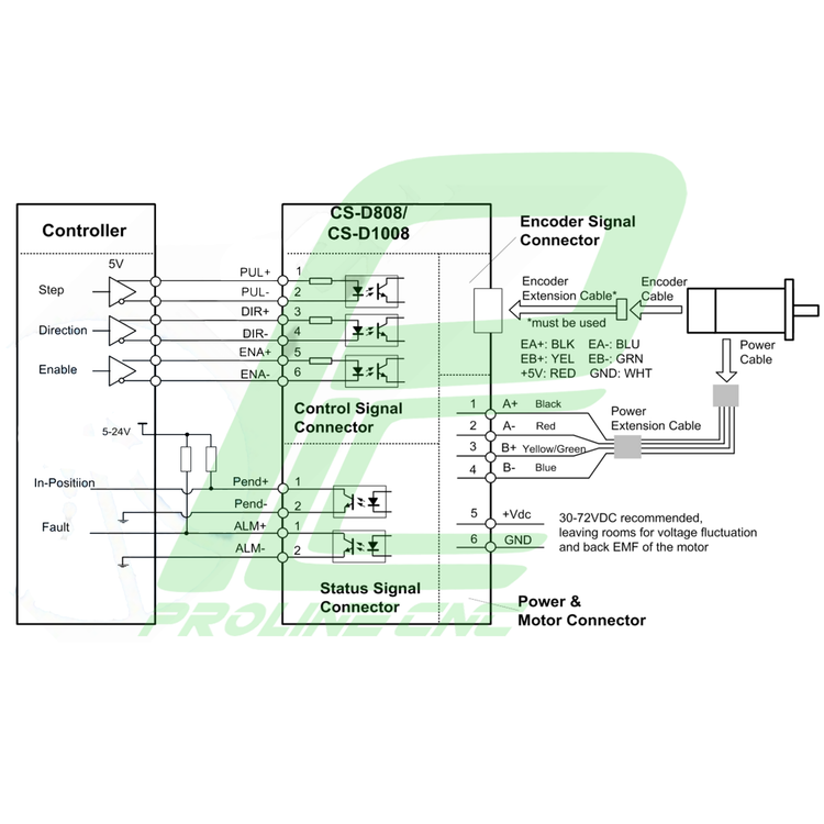 برای جلوگیری از ایجاد نویز در سیگنال PUL/DIR، سیمهای سیگنال پالس/دایرکشن و سیمهای موتور نباید به هم وصل شوند، بهتر است حداقل 10 سانتیمتر از هم جدا شوند، در غیر این صورت سیگنالهای مزاحم تولید شده توسط موتور به راحتی سیگنالهای دایرکشن و پالس را قطع میکنند. باعث خطای موقعیت موتور، بی ثباتی سیستم و سایر خرابی ها می شود.