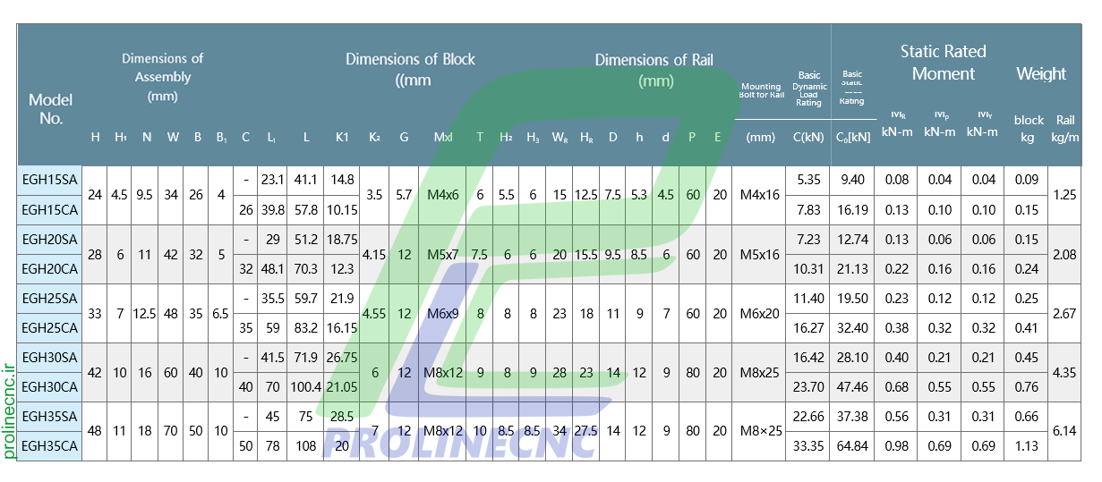 (در برندهای اصلی مثل HIWIN یا ABBA ممکن است کمی متفاوت باشد.)