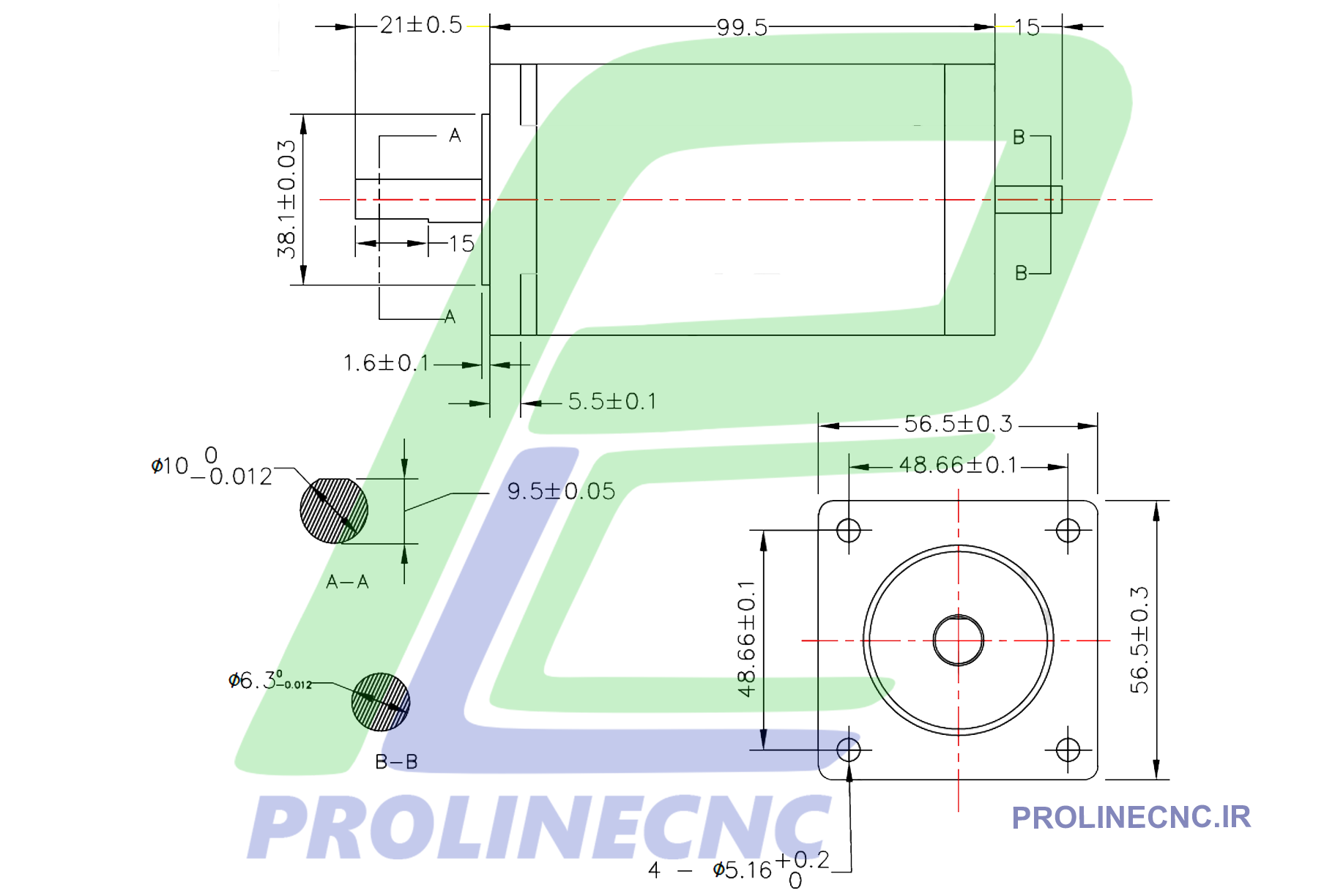 نقشه استپ موتور 57HS28 – دو سر شفت (۱۰ و ۶.۳ میلیمتر)
