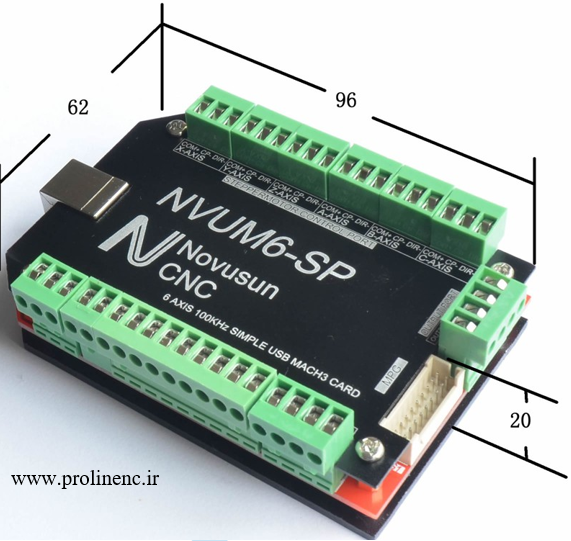 کنترلر NVUM6SP یکی از کنترلرهای محبوب CNC مبتنی بر Mach3 است که برای راهاندازی دستگاههای CNC ۳ تا ۶ محور طراحی شده. این کنترلر از طریق USB به کامپیوتر متصل میشود و تمام محاسبات حرکتی را بهصورت سختافزاری انجام میدهد، که باعث دقت و پایداری بالاتر نسبت به کارتهای موازی (LPT) میشود.