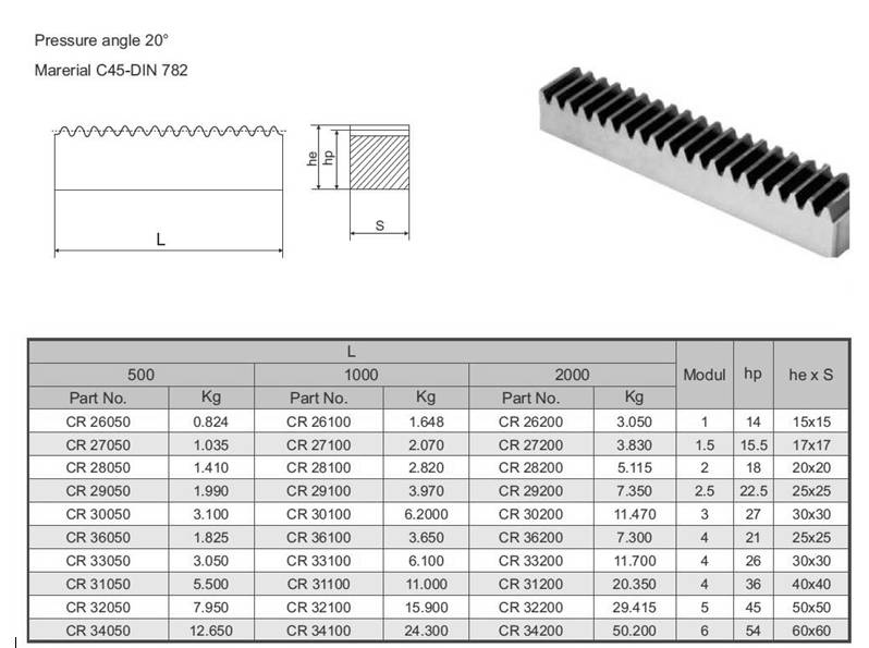 دنده شانه ای ساده مدول 1.5 مقطع 17*17 میلیمتر ساخت چین (شاخه دو متری)