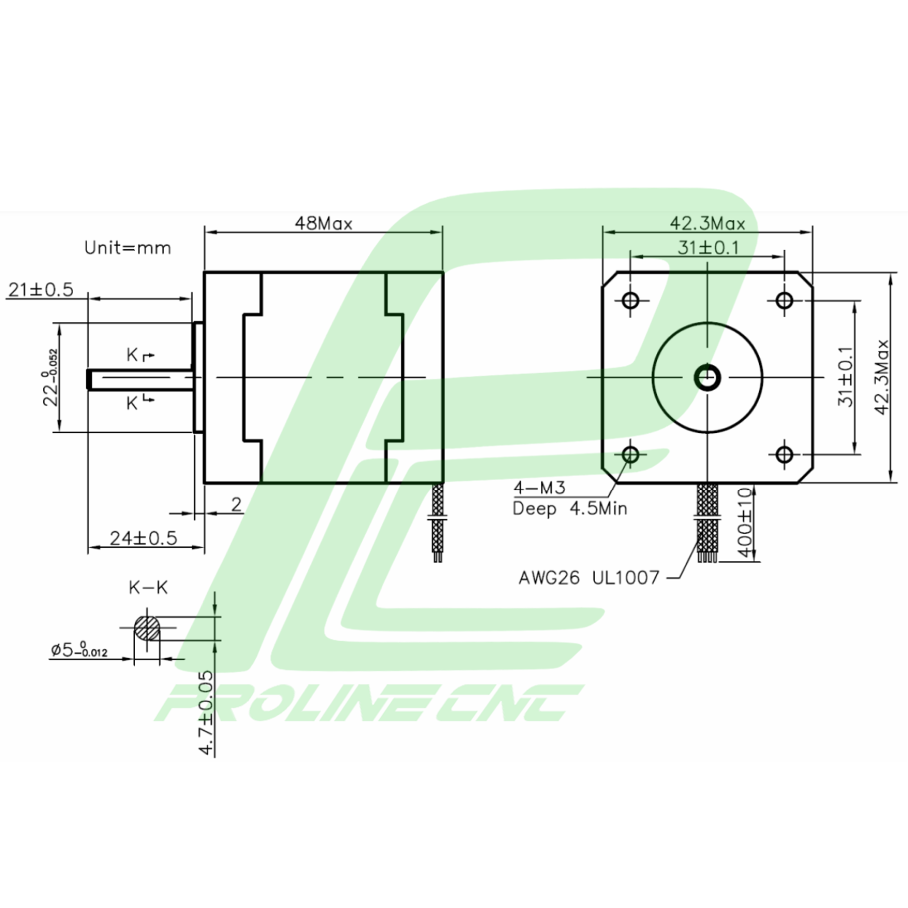 نقشه استپ موتور 42HS03 شفت 5 میلیمتر | Step Motor 42HS03 NEMA17 برند لیدشاین Leadshine