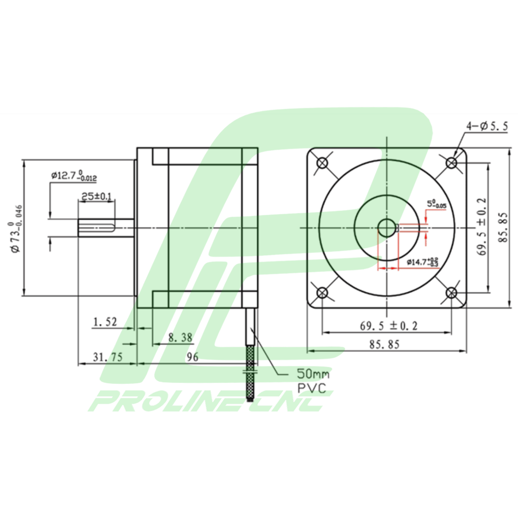 نقشه استپ موتور 86HS65 – شفت 12.7 میلیمتر