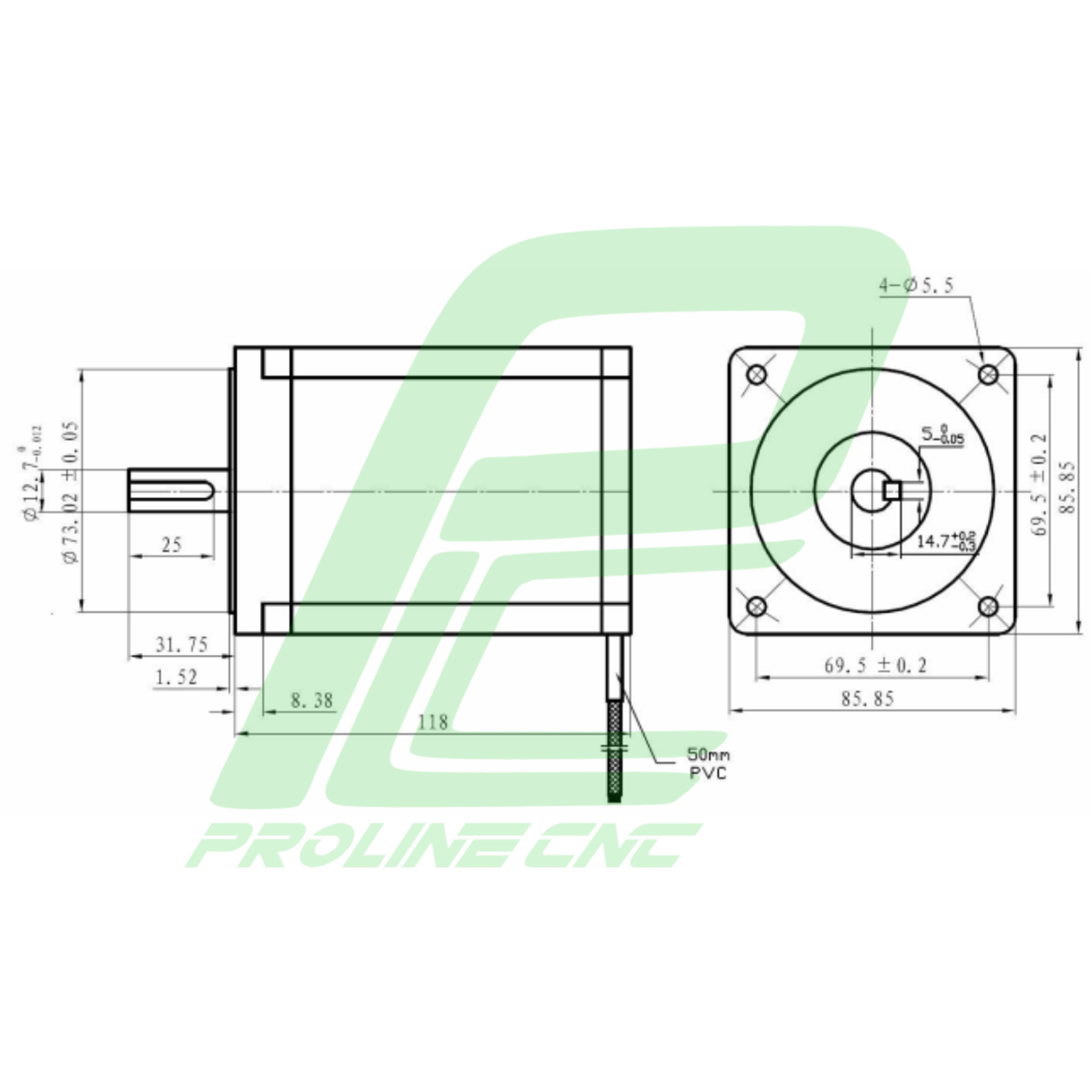 نقشه استپ موتور 86HS85 شفت 12.7 میلیمتر | Motor 86HS85 NEMA 34 برند leadshine