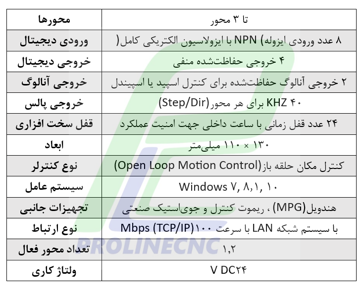 این کنترلر با دو محور فعال همزمان و یک محور رزرو، نرخ ۴۰,۰۰۰ پالس در ثانیه را پشتیبانی میکند و امکان حرکت دقیق و نرم در ماشینهای CNC را فراهم میکند.