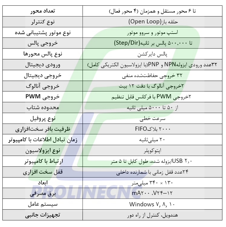 کنترل همزمان تا ۶ محور مستقل و 4 محور فعال