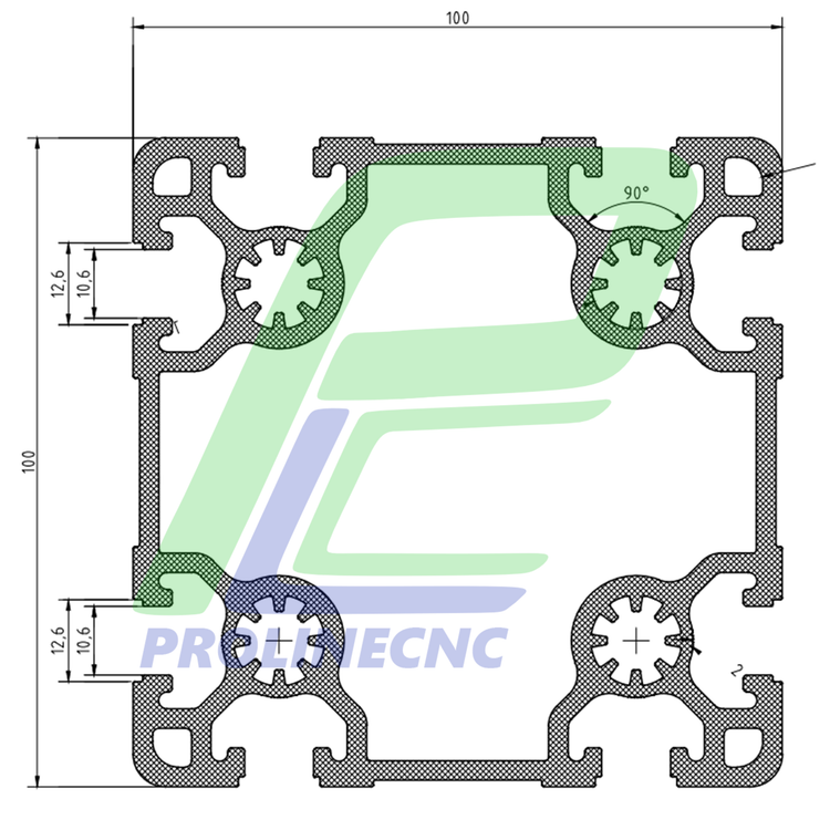 پروفیل 100 در 100 آلومینیومی شیاردار مهندسی سایز 100X100