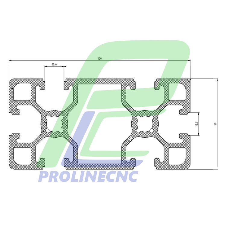 پروفیل 100 در 50 آلومینیومی شیاردار مهندسی سایز 100X50