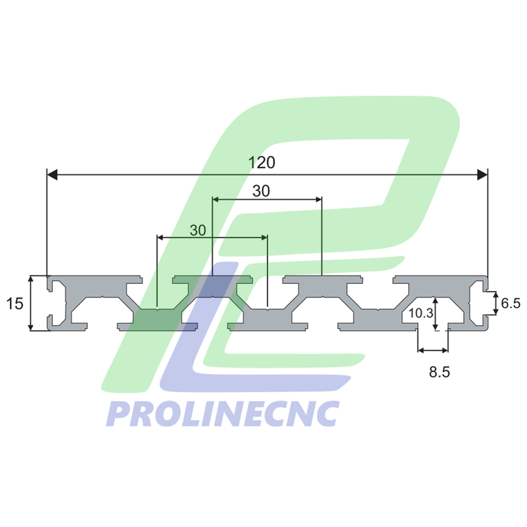 پروفیل 15 در 120 آلومینیومی شیاردار مهندسی سایز 15X120