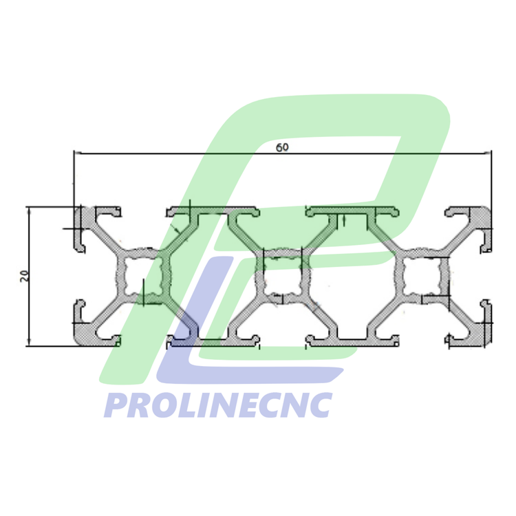 پروفیل 20 در 60 آلومینیومی شیاردار مهندسی سایز 20X60