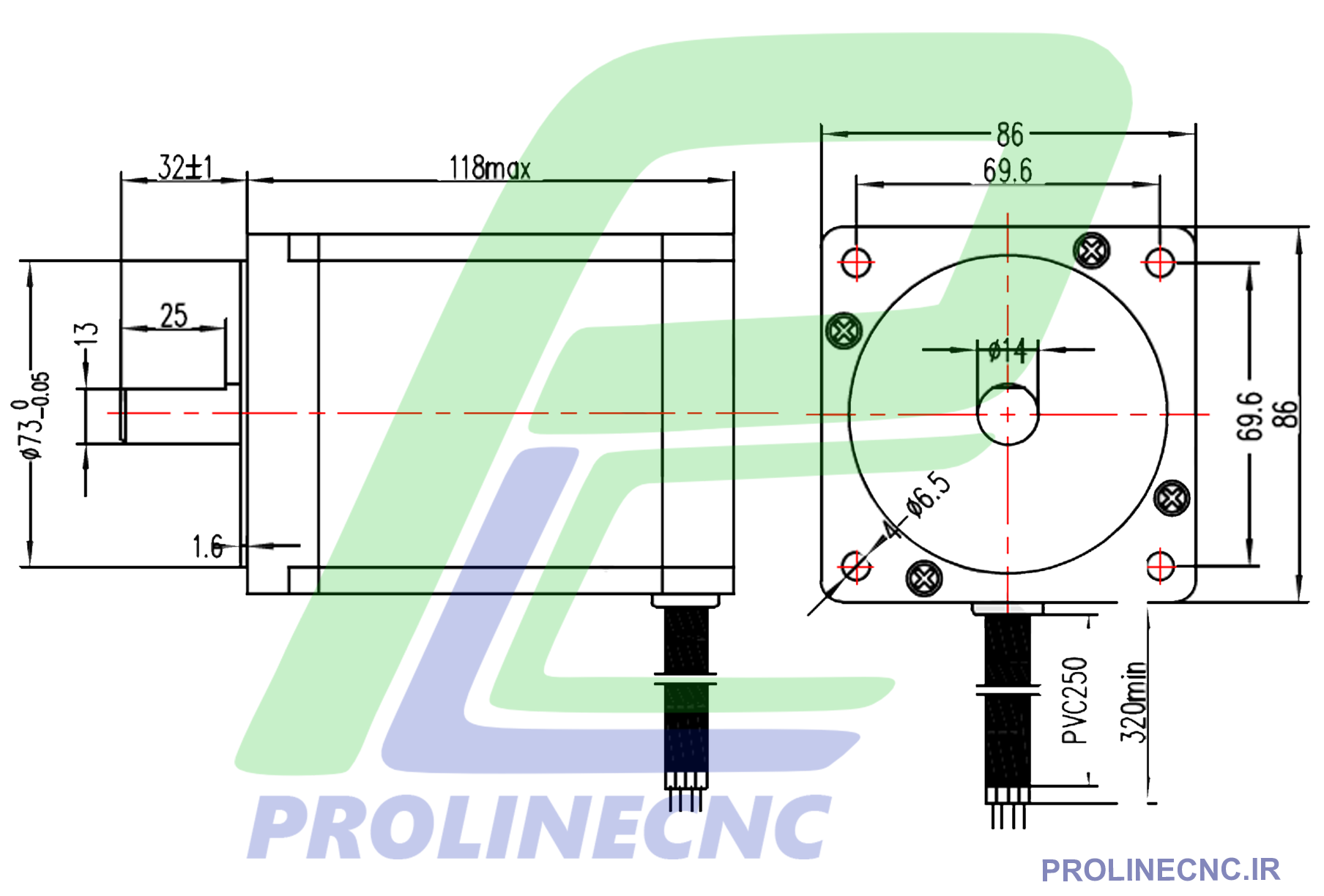 نقشه استپ موتور 85 کیلوگرم سانتی متر مدل 86HS85 شفت ۱۴ میلیمتر