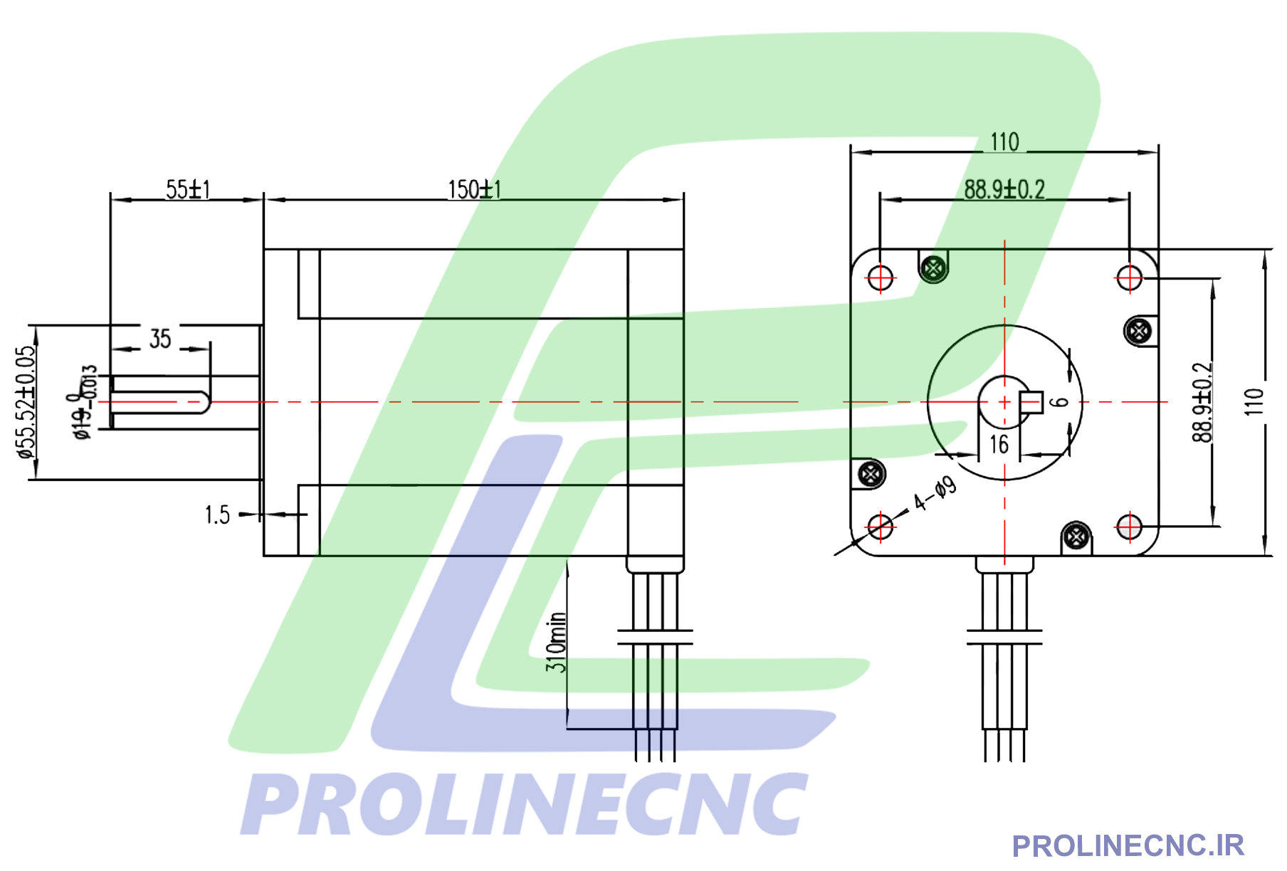 نقشه استپ موتور 110HS200 شفت ۱۹ میلیمتر | Step Motor 110HS200 NEMA 42 برند MASH
