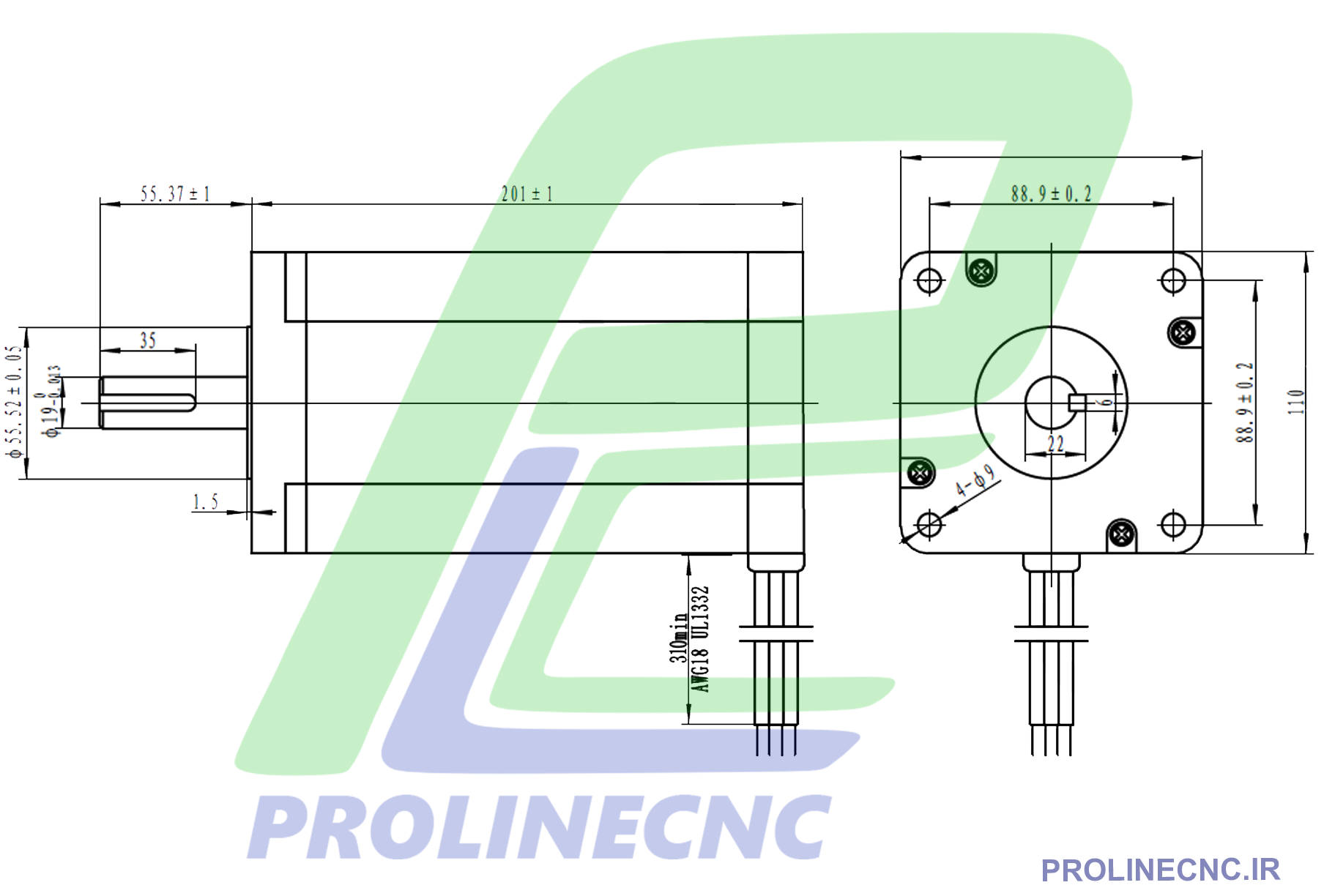 استپ موتور 110HS300 از نوع دو فاز هیبریدی با زاویه گام ۱.۸ درجه است.
