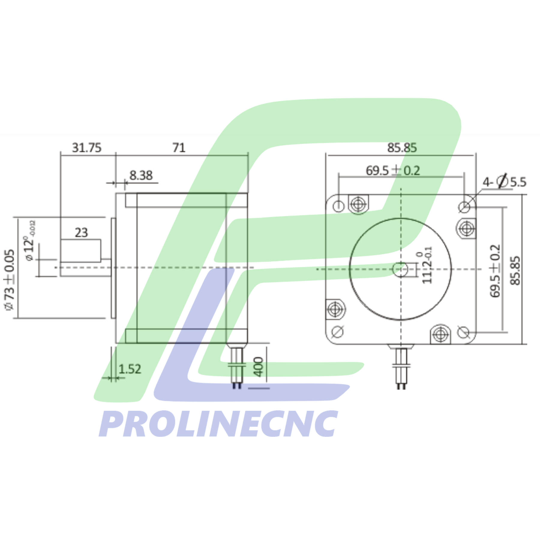 نقشه استپ موتور سه فاز مدل 863S22 شفت ۱۴ میلیمتر | 3-Phase Stepper Motor NEMA 34 برند MASH