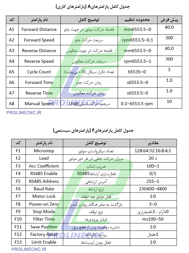 تمامی پارامترها قابل خواندن و نوشتن هستند