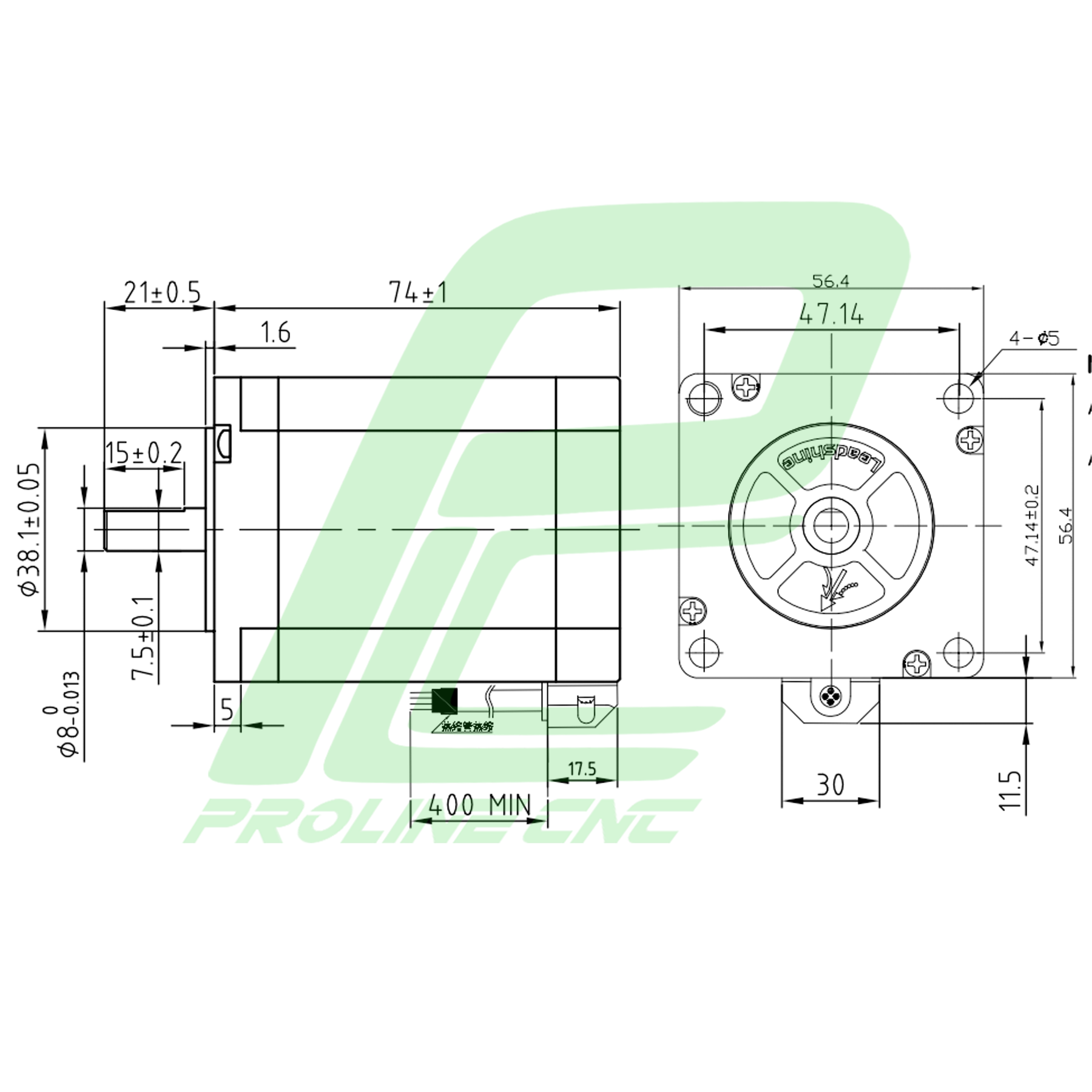 نقشه استپ موتور 57CM22 شفت 8میلیمتر | Step Motor 57CM22 NEMA 23 برند Leadshine